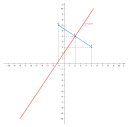 Ez a pont rajta van a keresett egyenesen. Ennek az egyenesnek a meredekségét már ismerjük, `m=3/2`. A b értéket a F pont koordinátái alapján lehet meghatározni.